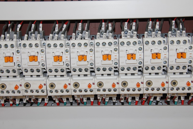 ? ??3.該機控制系統采用PLC終端控制,以液晶顯示觸摸屏終端為人機界面進行參數設定,設備運行過程中設有故障提示等等。該機適用于花崗石條板的連續磨削及拋光。板材輸送帶、磨盤橫移梁的工作速度均為變頻器調速;磨盤工作壓力、板材的磨削寬度在設定值范圍內可調。本機可對板材形狀自動識別,每個磨盤(磨頭)可根據識別板材的形狀自動升降,同時對板材磨削進行跟蹤記錄。整機均按標準化生產,性能穩定、故障率低等優點。
