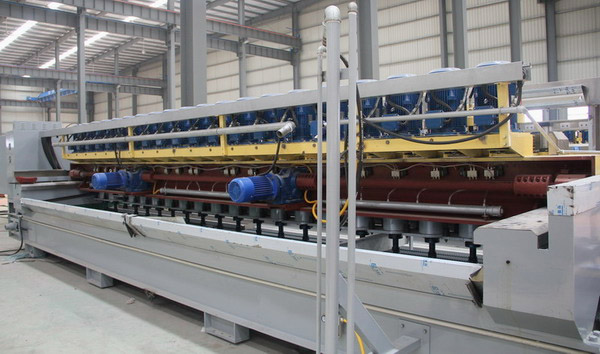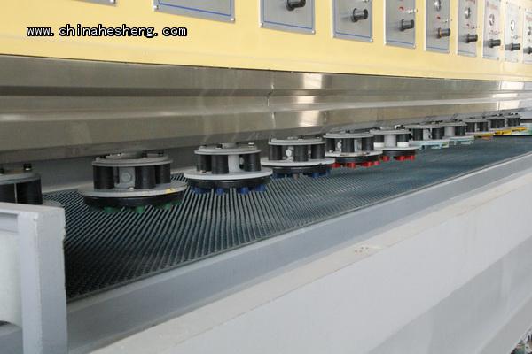 1:釆用新型結構磨頭,可分別根據不同磨料調節每個磨頭橡膠彈性,在相同情況下所生產板材的光潔度和平整度要高出一成以上。此磨頭還可杜絕打磨料等優點。
